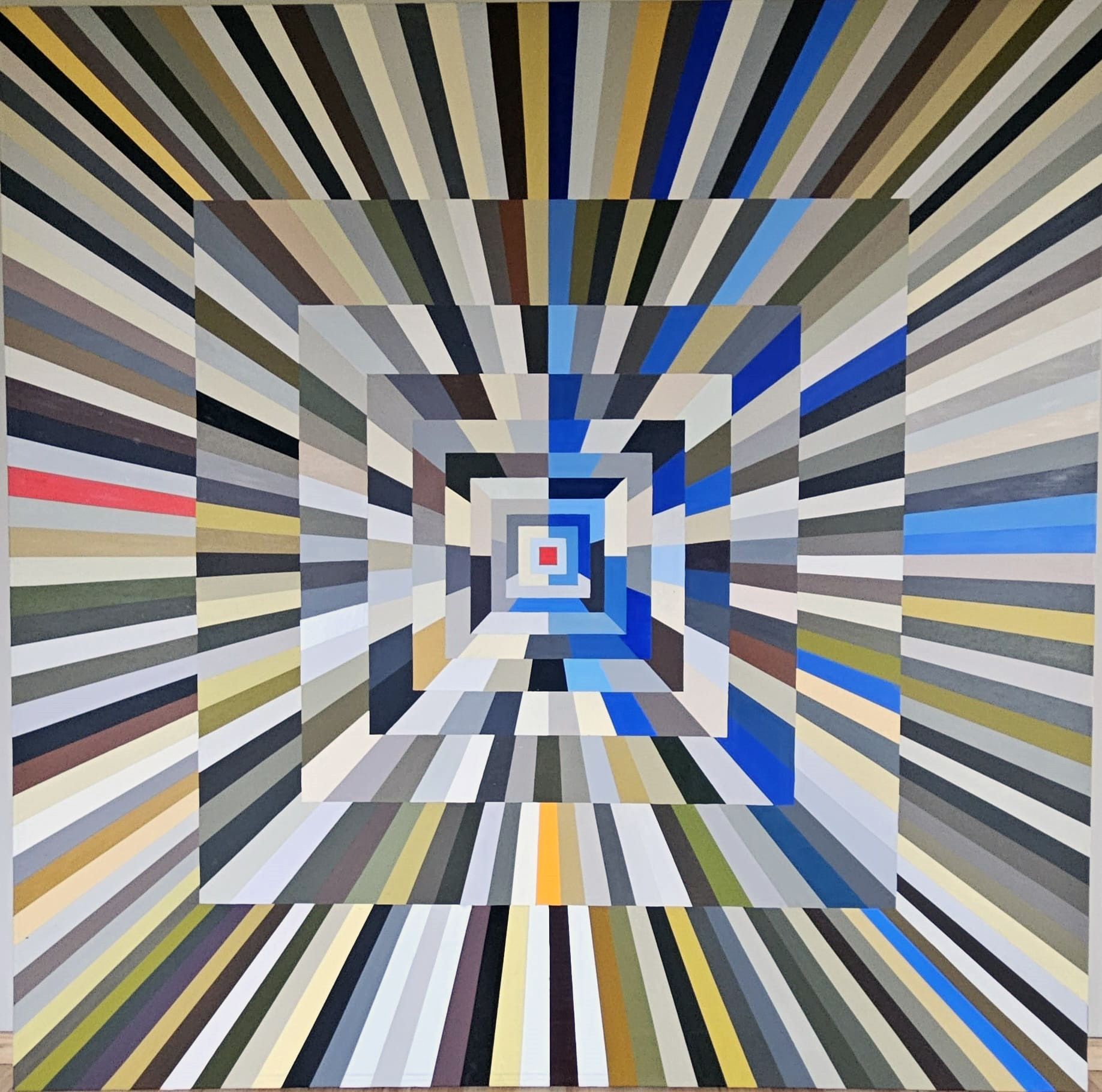 Im äußersten Ring des Bildes befindet sich ein weiteres rotes Feld, das zugleich das 111. Feld ist. Es wurde am 111. Geburtstag des Großvaters des Künstlers gemalt und verleiht dem Werk eine intime, persönliche Note. Dieses Feld steht für einen besonderen Moment der Erinnerung und Verbundenheit zwischen den Generationen. Wie in der Fibonacci-Folge, in der jede Zahl auf der vorherigen aufbaut, verweben sich auch unsere Leben und Geschichten miteinander. Dieses Feld ist mehr als nur ein Farbakzent – es ist eine berührende Hommage an einen geliebten Menschen und zeigt, wie unsere Vergangenheit in die Gegenwart hineinwirkt und Teil unserer Weiterentwicklung ist.